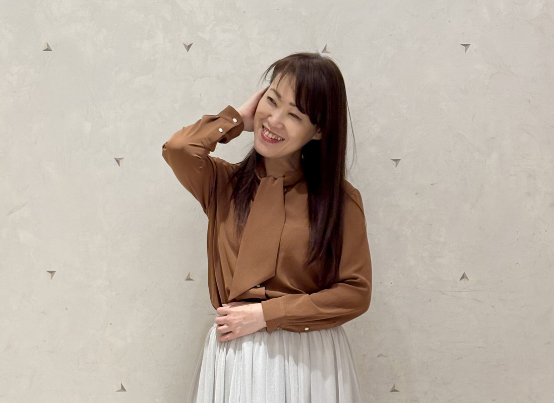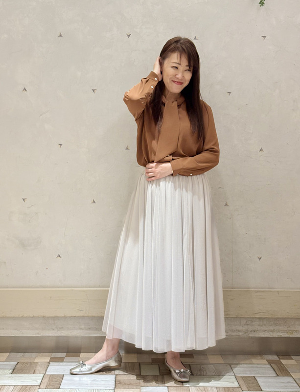 華やかな印象のボウタイブラウスです。