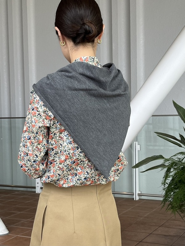三角形のストールでアレンジが簡単なのが嬉しいポイント。