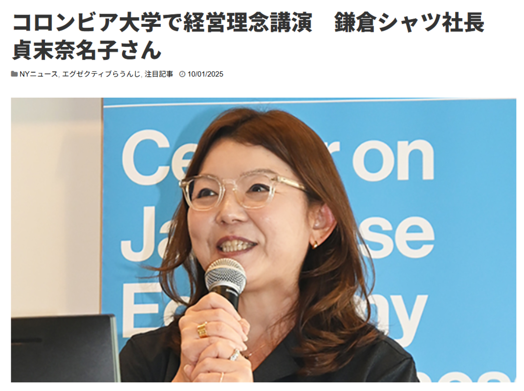 「週刊NY生活」に弊社社長貞末のコロンビア大学での経営理念講演の模様が掲載されました。