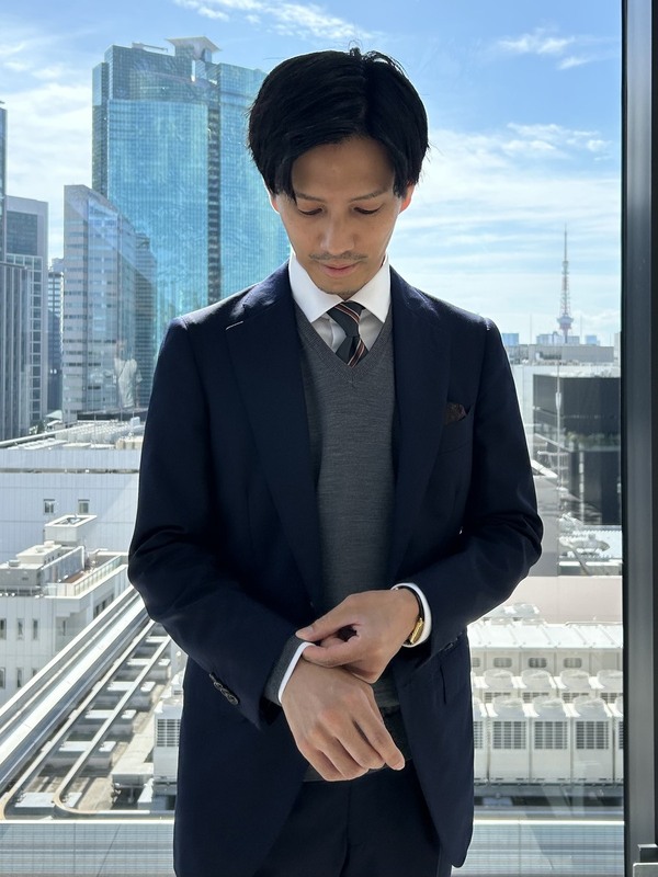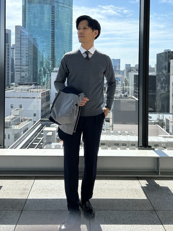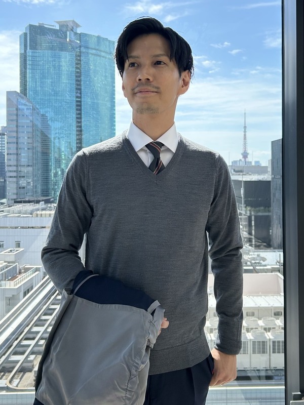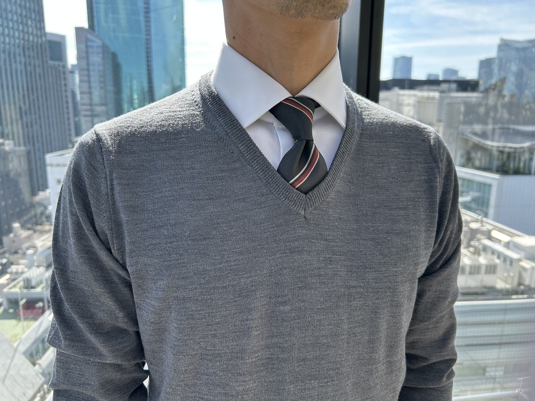 【30ゲージVネックセーター】ビジネスに上品なレイヤードスタイルを