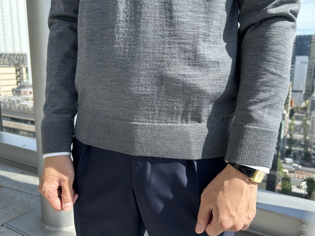 きめ細かく上質なセーターなので、梳毛スーツとの相性が良く艶やかに決まります。