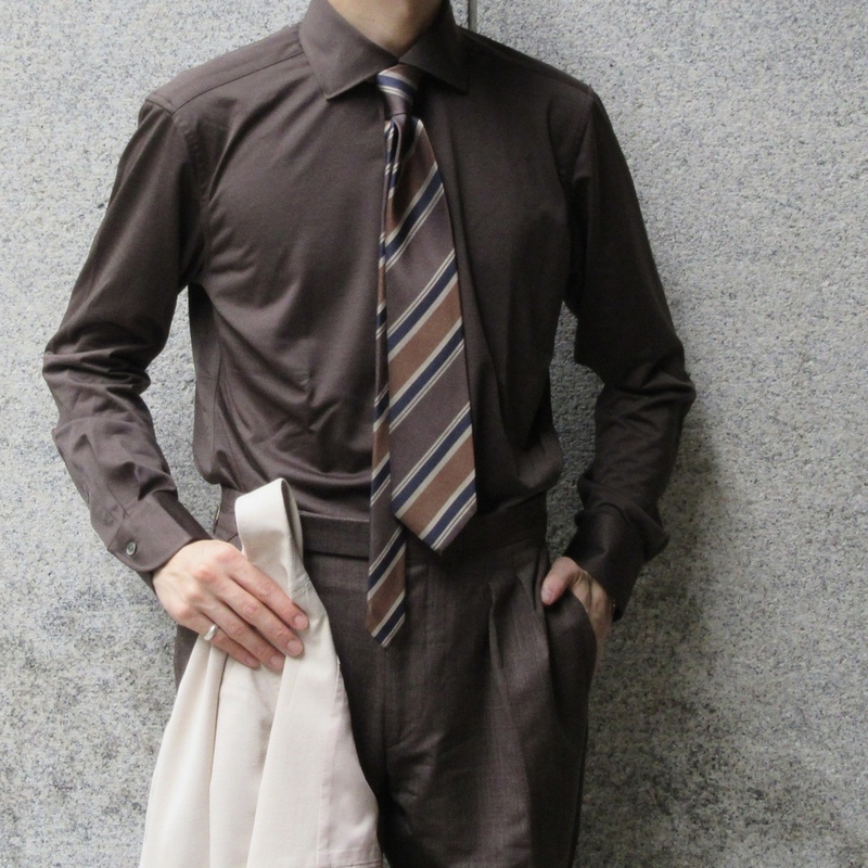 ブラウン系/レジメンタル(ストライプ)/シルク Italian Collection