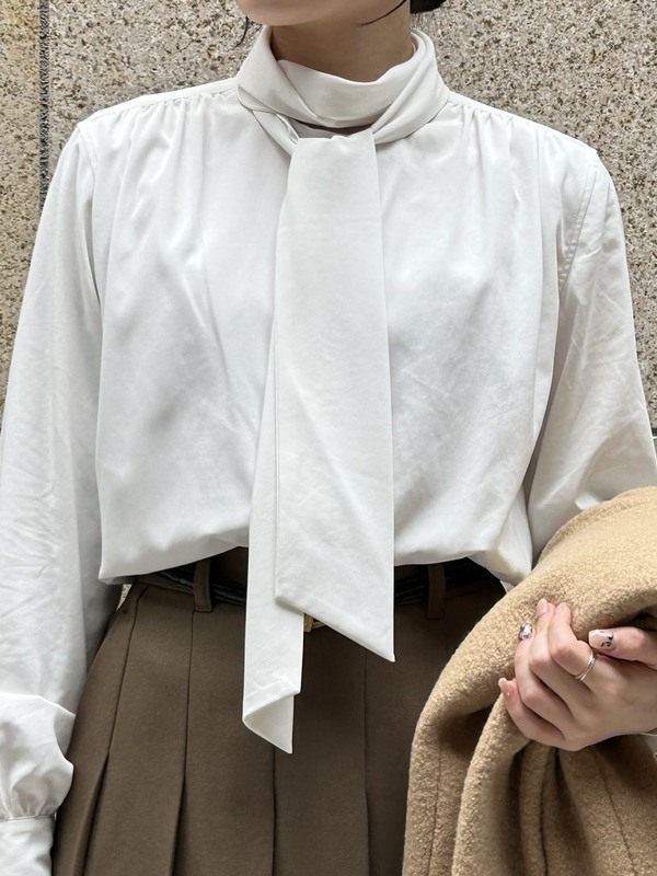 秋冬に欠かせないレイヤードスタイルにも活躍のボウタイブラウスのご紹介です。
