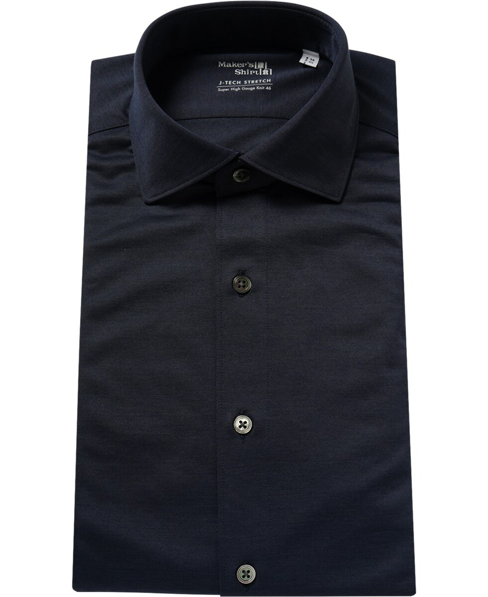 世界初の46Gのスムース編み機により織り出された生地は、肌さわりもよく滑らかで長時間お召いただいても疲れにくいシャツです。