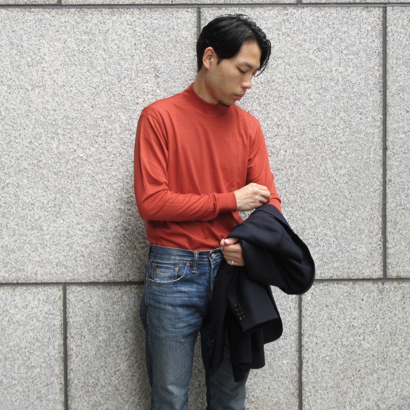 本日ご紹介させていただくのは京都店限定「モックネック・メリノウールTシャツ」でございます。