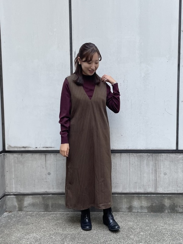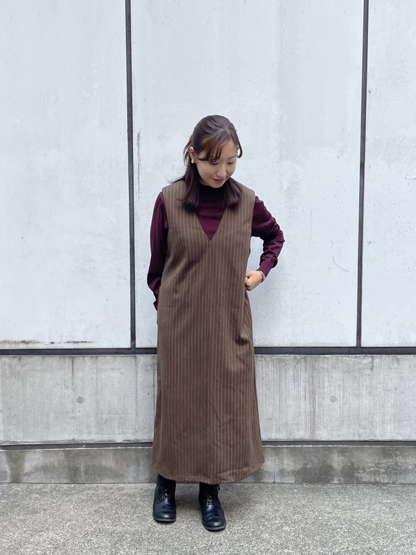深みのあるボルドーに、ブラウンのジャンパースカートを