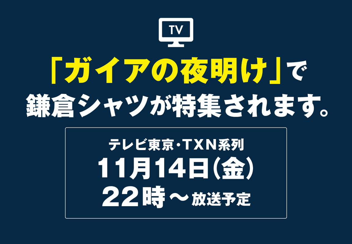 「ガイアの夜明け」で鎌倉シャツが特集されます。気になる商品がある方はお早めに購入されることを強くおすすめいたします。