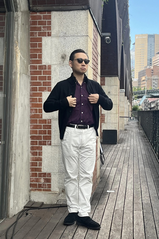 インナーのシャツにはVintage Ivyを着用して大人な雰囲気のカジュアルスタイルを意識しました。