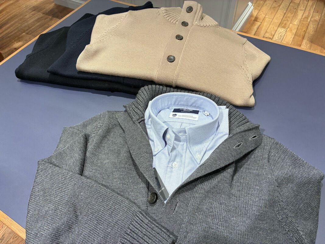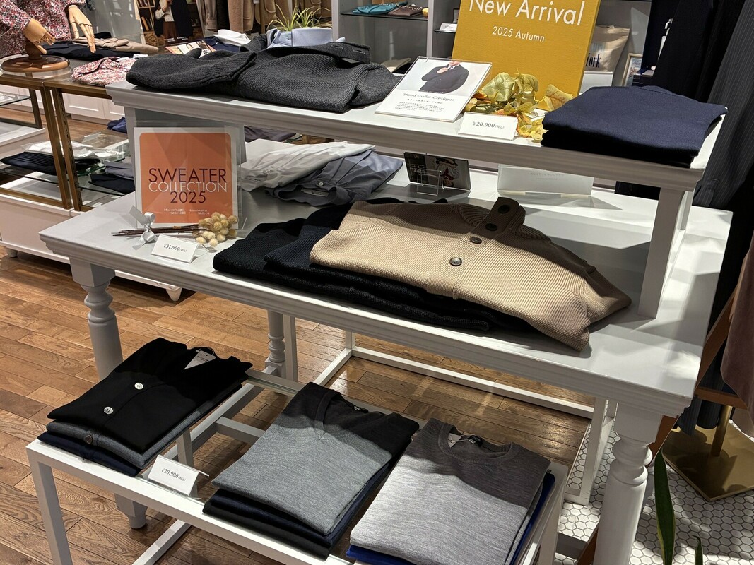 店頭では、ご紹介したスタンドカラーカーディガン以外にも、