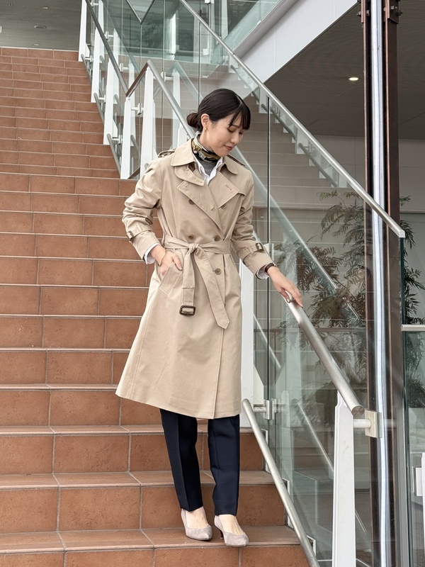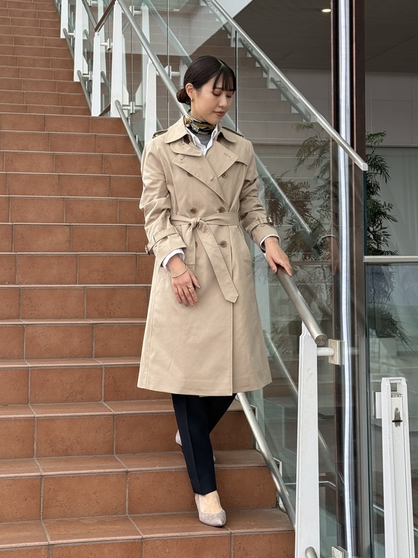 ロングシーズン使えるトレンチコートをご紹介いたします。