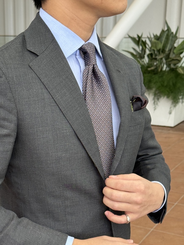 ネクタイを結んだ際に、立体感が出るよう通常は8.0㎝のところ、8.5㎝の大剣幅で作製しました。