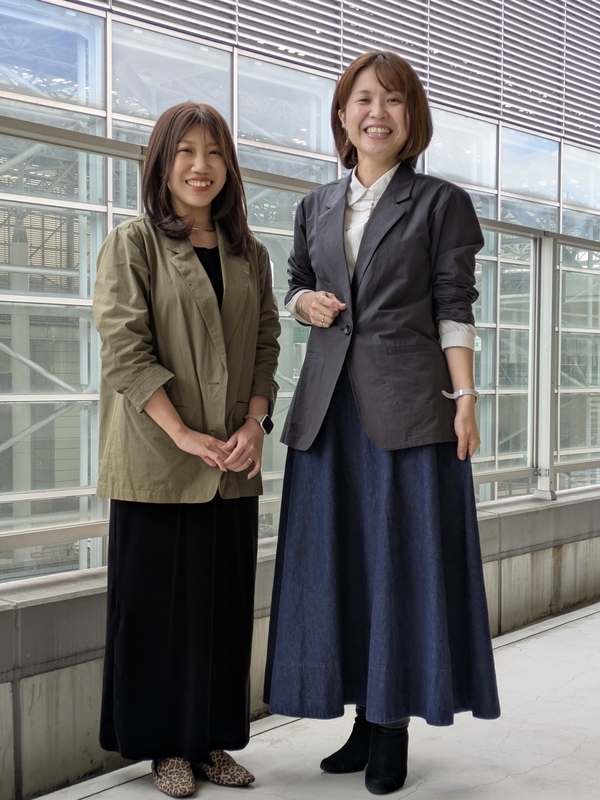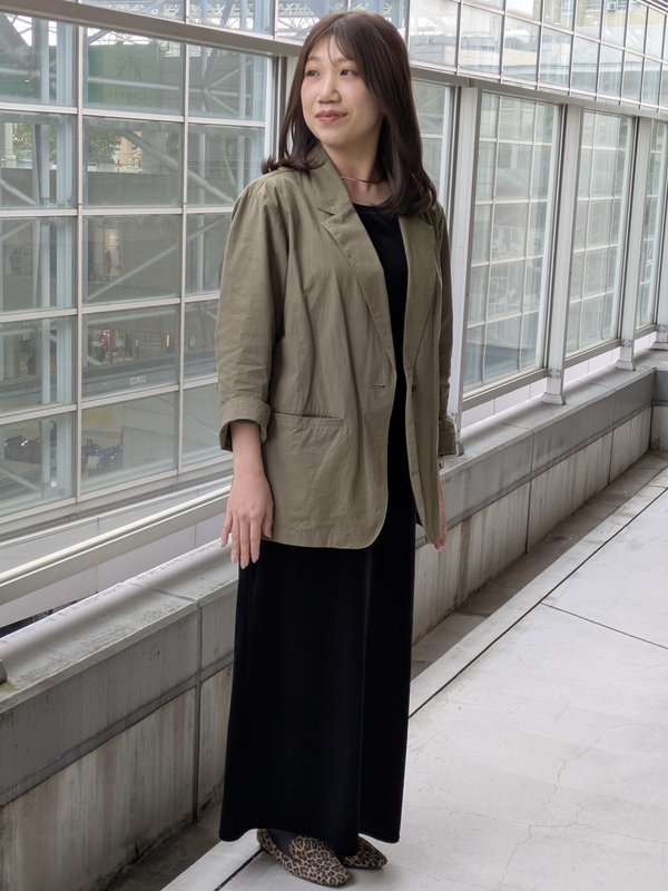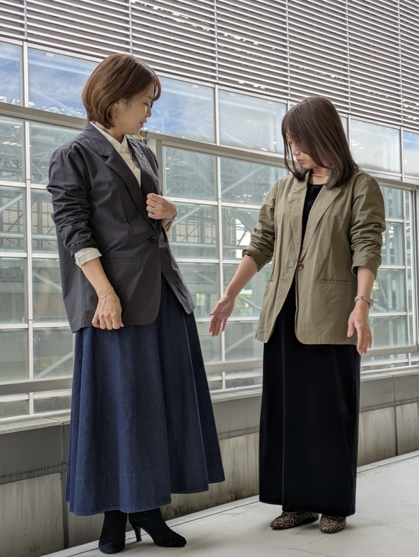 スタッフの身長も158cmと151cmで違いますが、さらりと羽織るだけでサマになるサイズバランスにこだわっています。