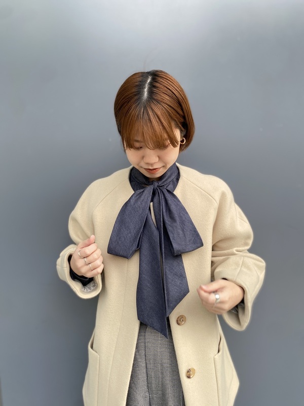 首に一周巻き、そのまま結べば適度なボリューム感がありつつ