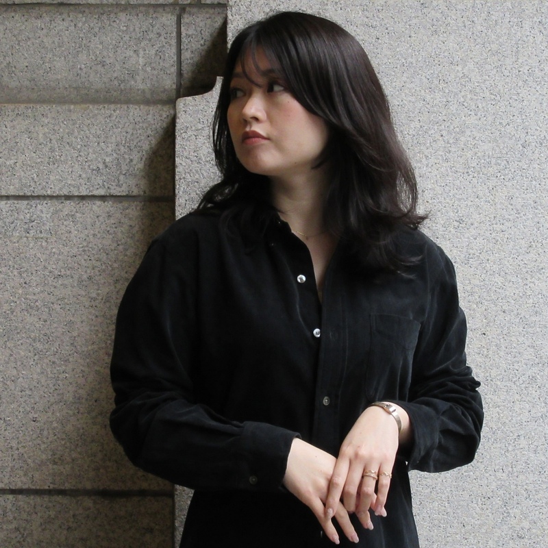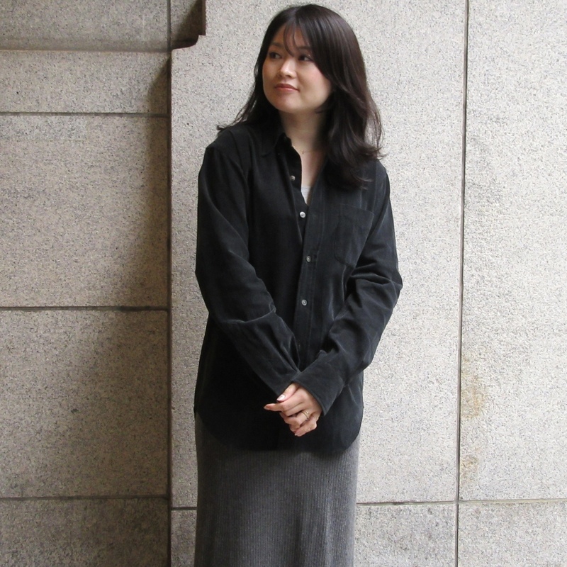 コーデュロイのもこもこっとした生地感が女性にもよく合います。