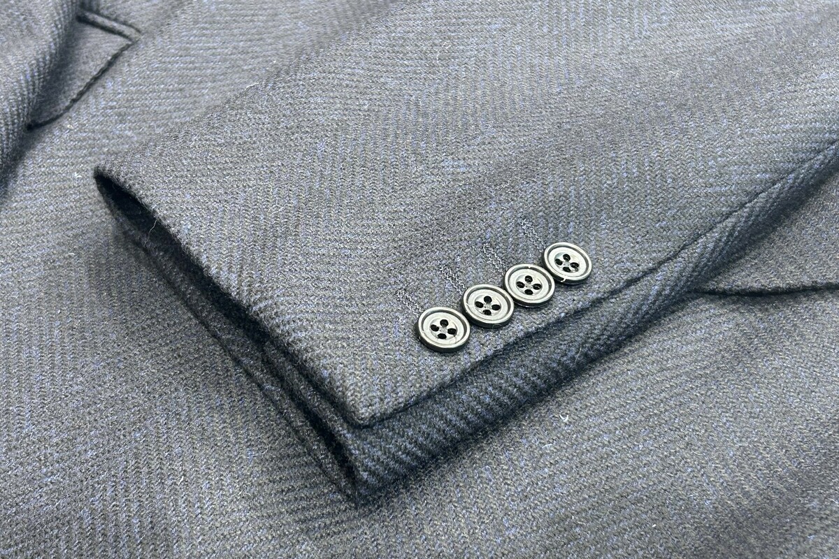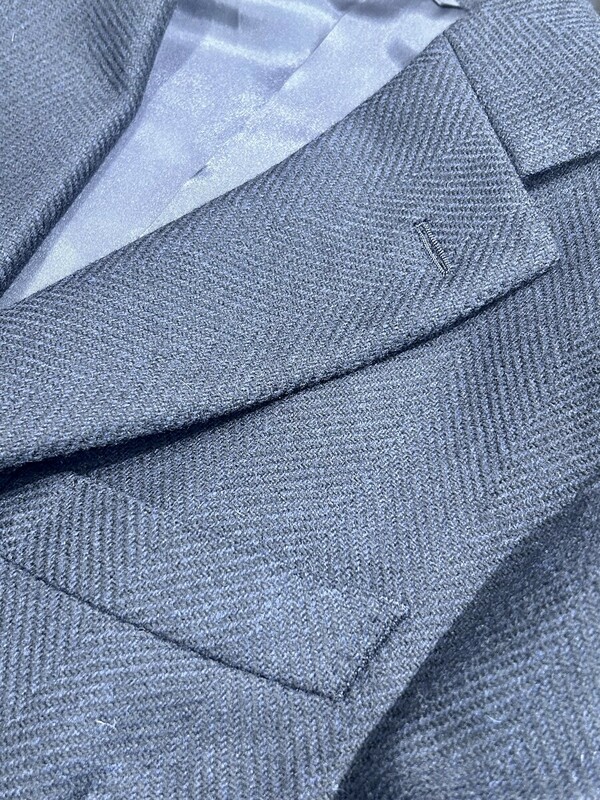 生地には秋冬物の代名詞、ヘリンボーン柄を配しております。