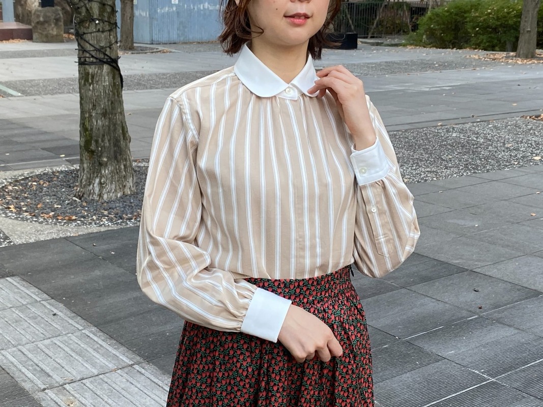 ほんのり丸みのある襟は、堅すぎず、女性らしい柔らかさを添えてくれます◎