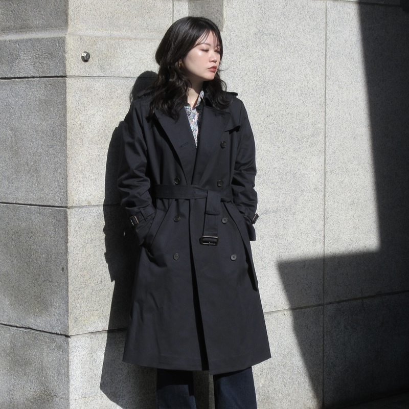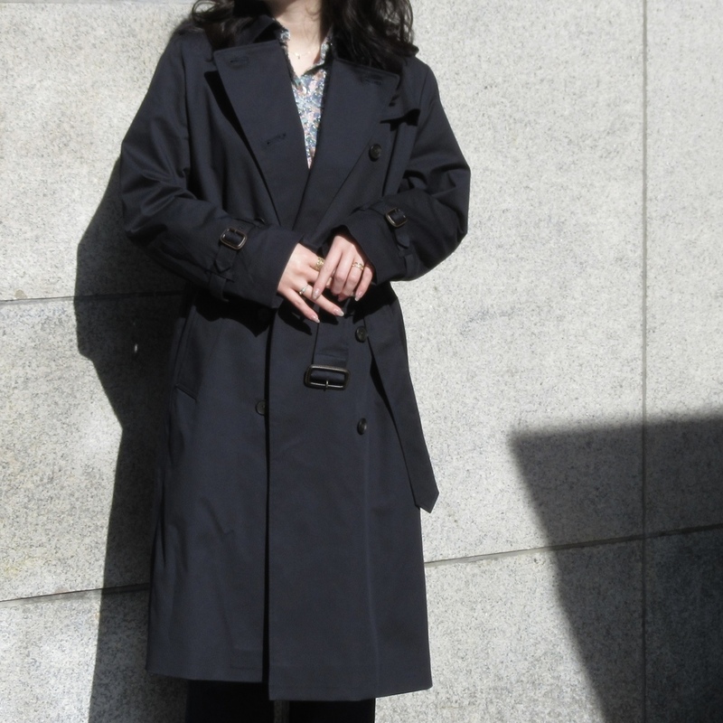 ネイビーなトレンチコートは綺麗目なコーデにも