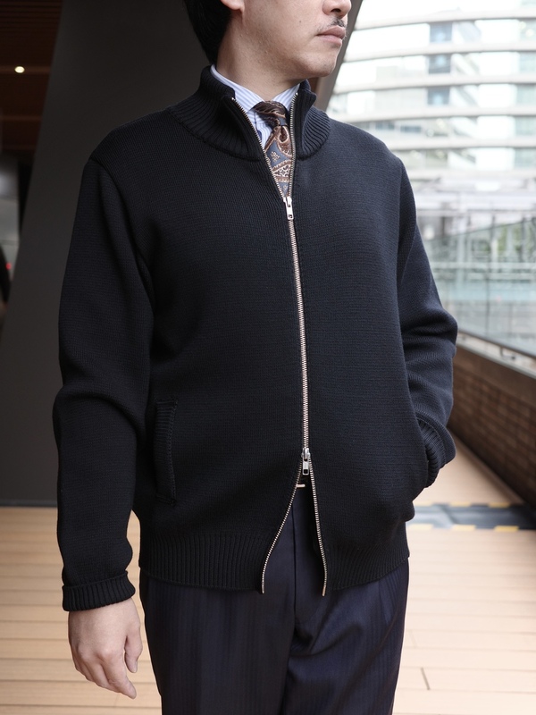 本日は今年新作ニットのドライバーズニットブルゾンをご紹介いたします。