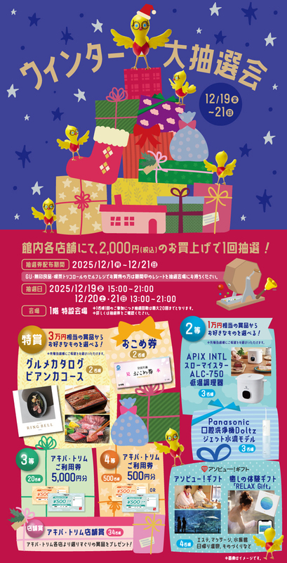 12/1~抽選券を配布し、12月19、20、21日で抽選に参加できます。