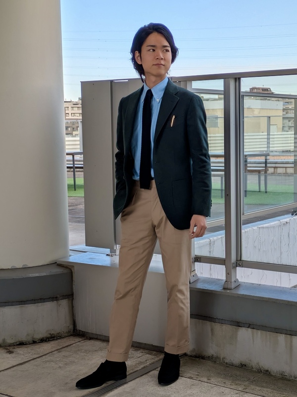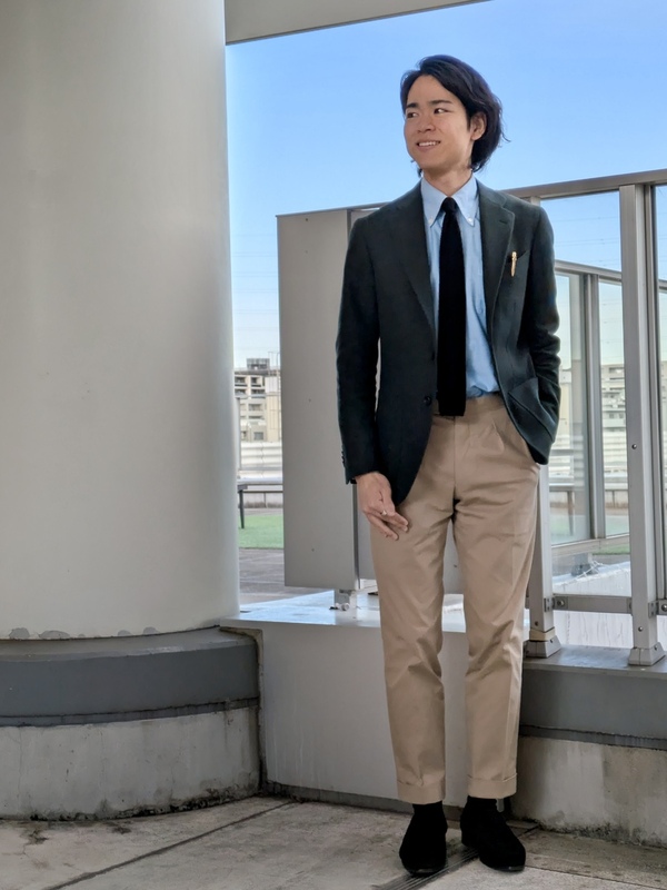 グリーンのフランネル生地を選びました。ジャケットのバリエーションを増やしたく、オーダーしたそうです!