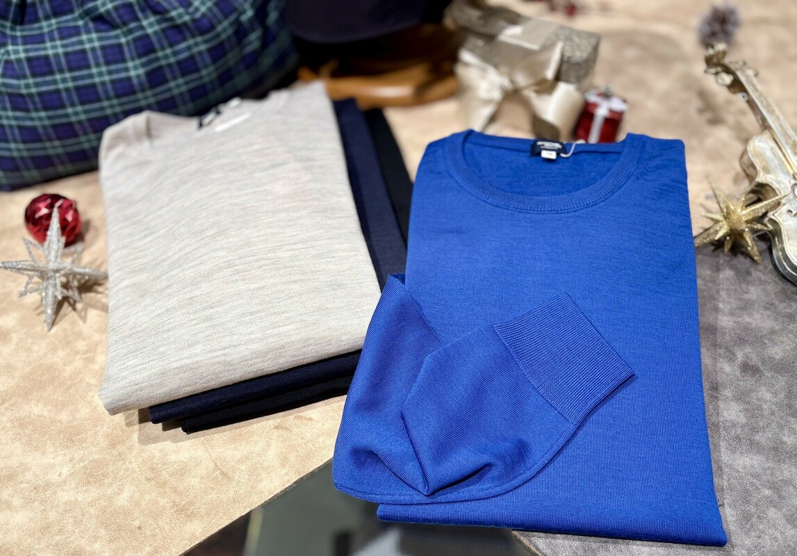 クルーネックセーター(12ゲージ) スーパーエクストラファインメリノ