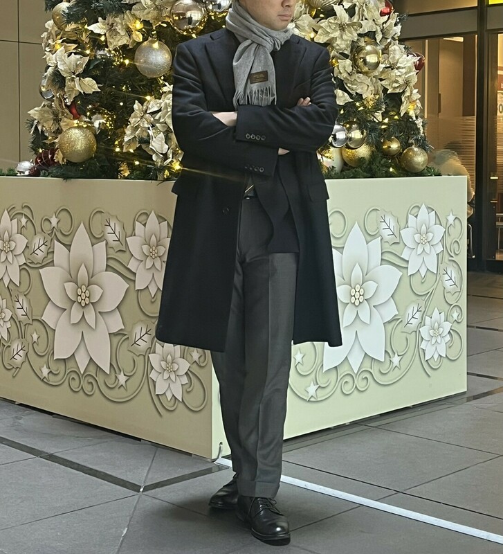 ジャケパンやスーツなどのドレススタイルにコートを羽織るときは、垂れ下げるだけでカッコいいです。