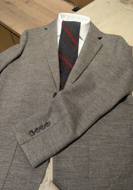 冬に着用したいヘリンボーン柄を採用したジャケットは、起毛感を感じられ、