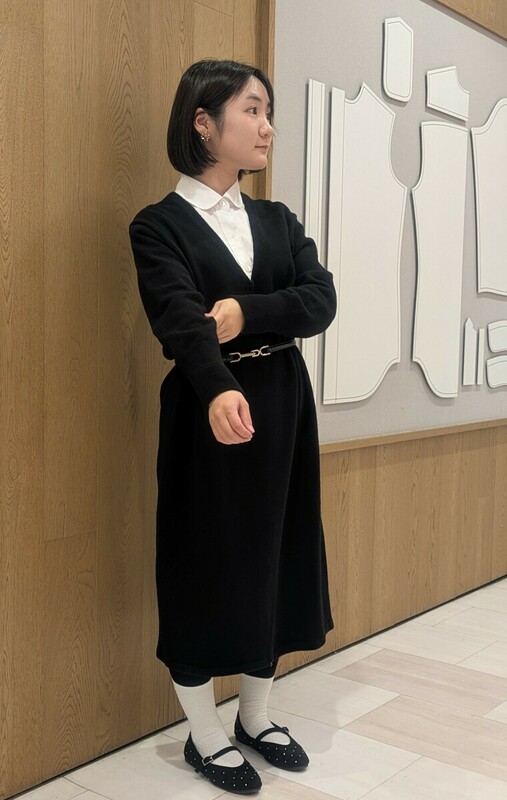 ふっくらとした肌触りのウール100%ワンピースに白シャツを合わせ、保温性抜群のコーディネートに仕上げました。
