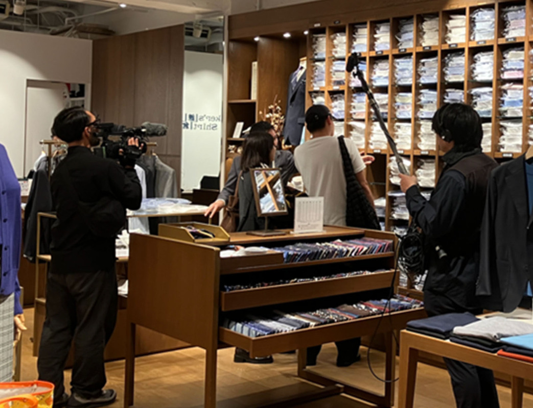 取材先は国内の店舗や縫製工場のほか、日本のクオリティとサービスを武器に海外市場へ挑戦する様子がフォーカスされ、ニューヨーク、ワシントンDC、北京、上海、サウジアラビアなど各国・各都市に終日テレビクルーが入りました。 撮影時間は延べ何百時間となったはずです。それを数十分にまとめるのですから、編集作業はどれほど大変なことでしょう。