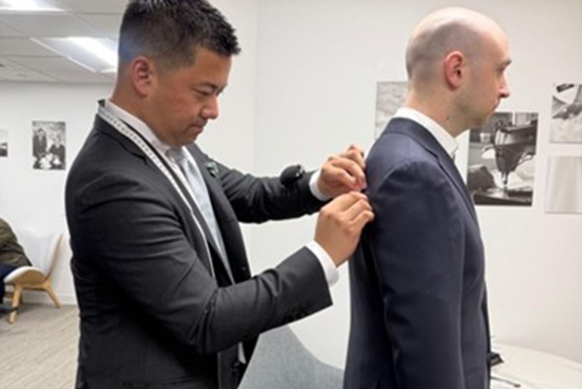 あらためまして、お伝えいたします。オーダーシャツは全店舗、オーダースーツは全国6店舗にて取り扱っております。