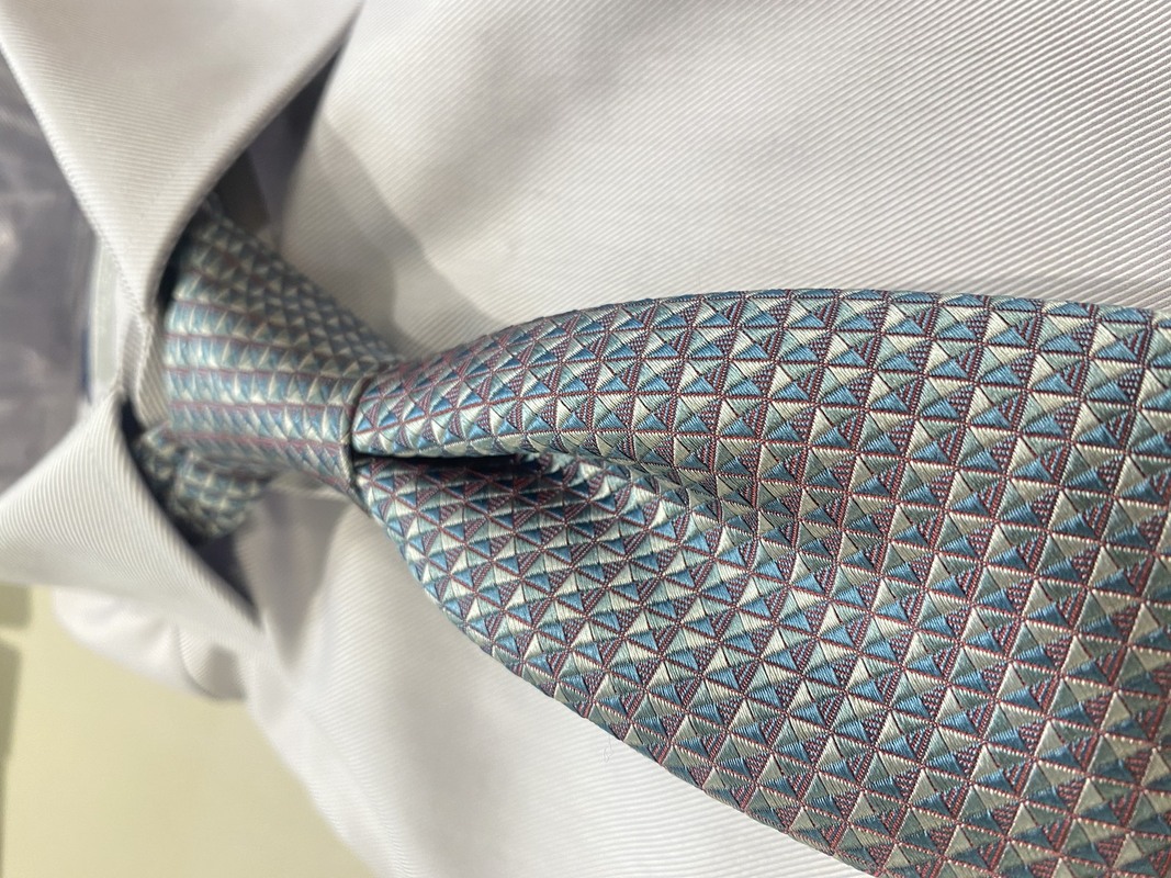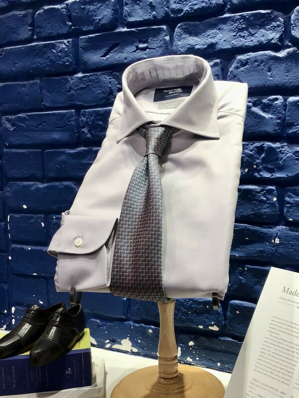 こちらのシャツには同系色のネクタイを合わせてみました。