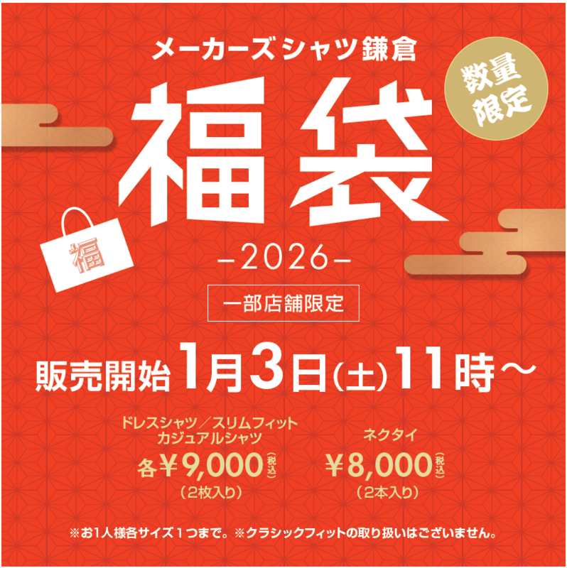 本日は年末年始の営業時間と2026福袋の販売についてお知らせいたします。