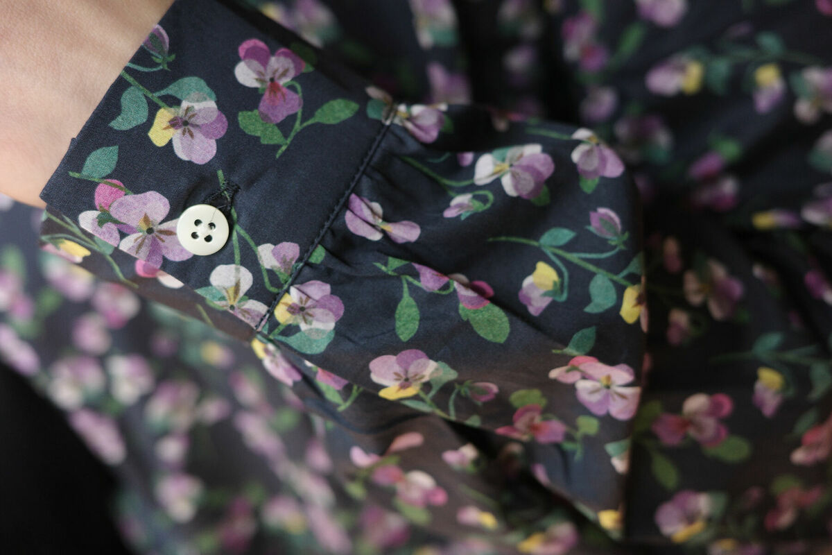 博多店2025年最後のブログは、リバティファブリックスよりパンジー柄のブラウスご紹介いたします。ぜひご覧くださいませ。