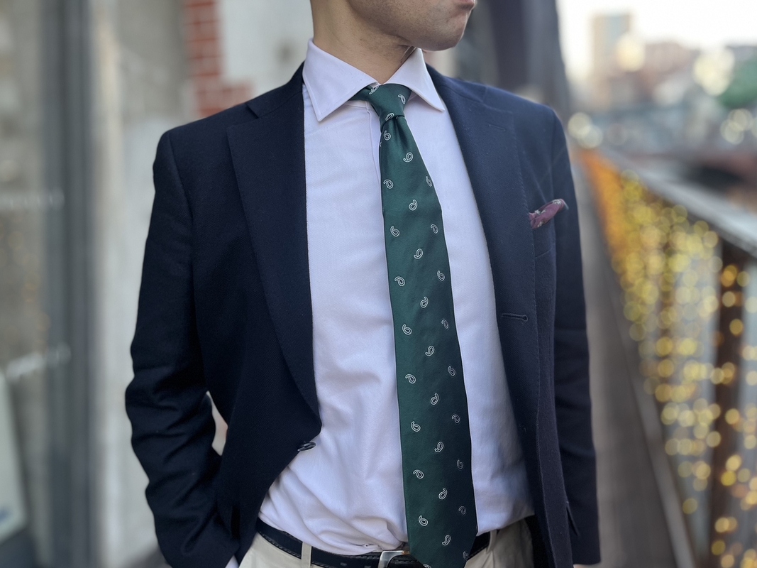 控えめでシンプルなペイズリー柄は様々なシャツとの相性が良く、1本は持っておきたい柄です。