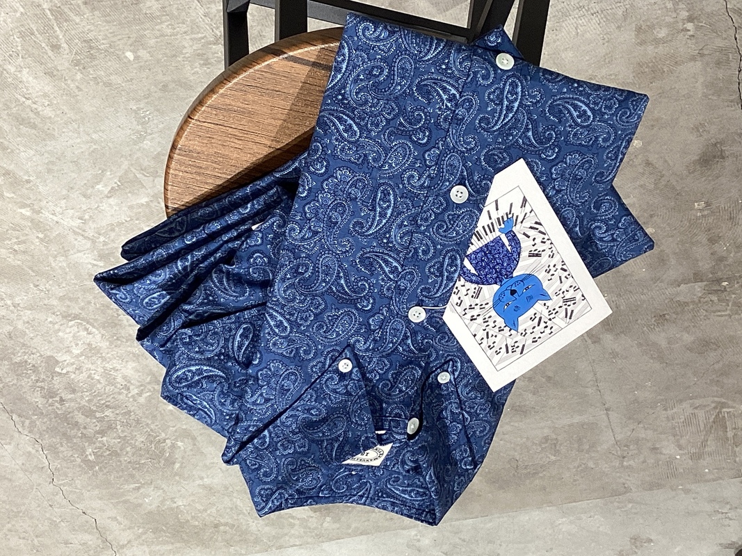 鮮やかなブルーが目を引く総柄ペイズリーのボタンダウンシャツ。