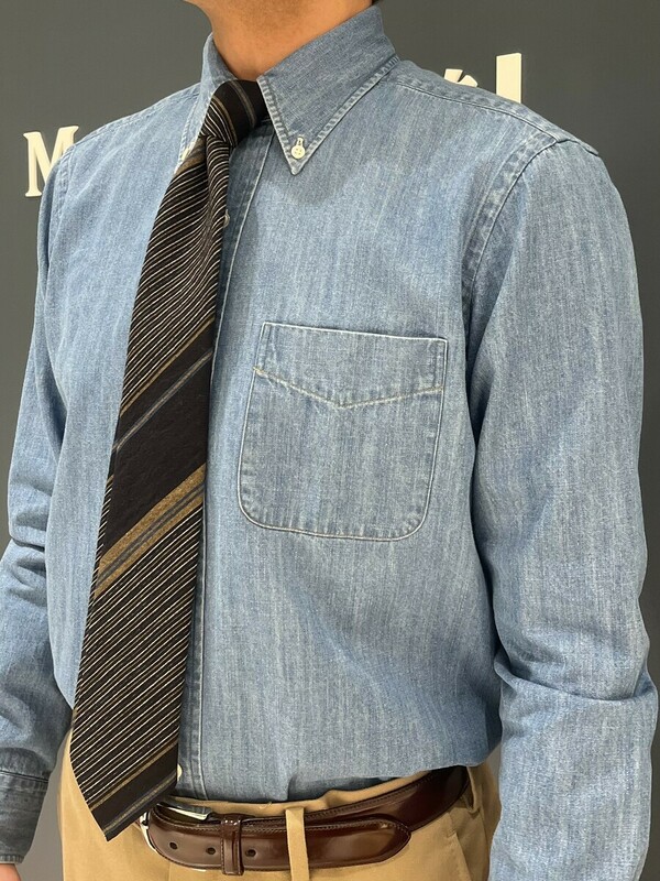 デニムシャツとの組み合わせは、