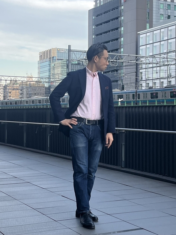 タックインして、ジャケットと合わせればドレスカジュアルな印象を与えてくれます。