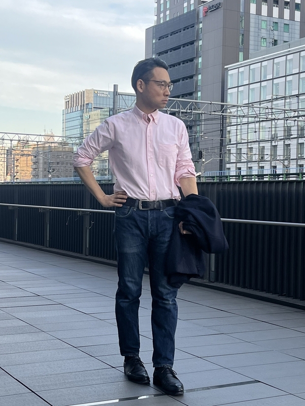 サイズ感も以前のカジュアルオックスフォードシャツに比べるとゆったりとしていて、タックインをしても裾が上がってこない安心感があります。