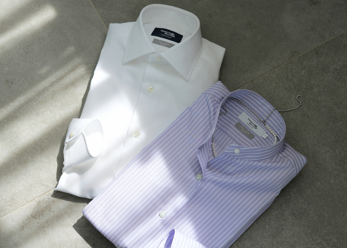 どちらのシャツも、お手入れは「洗って、乾かすだけ」ご自宅の洗濯機でケアが可能です。