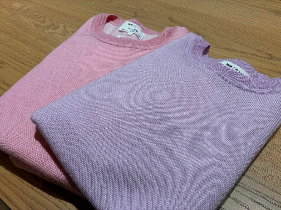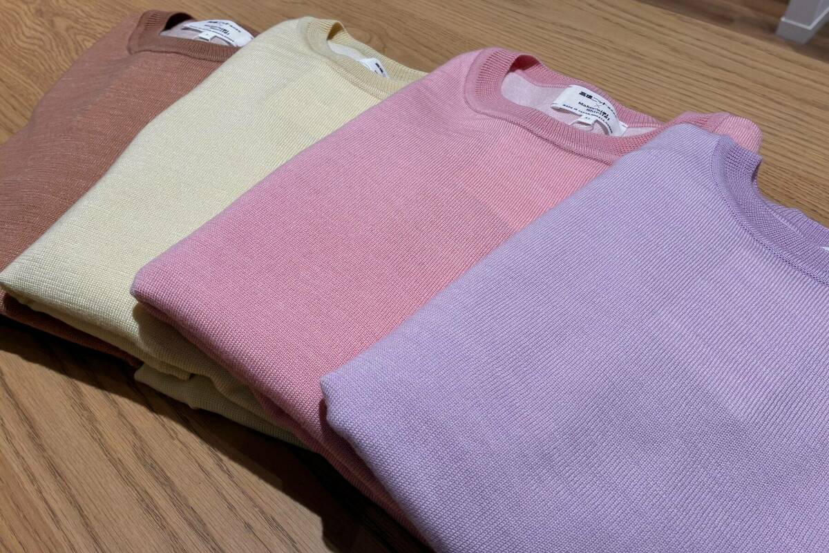 桜、牡丹、芍薬で染め上げたニットを、コーディネートでご紹介いたします。