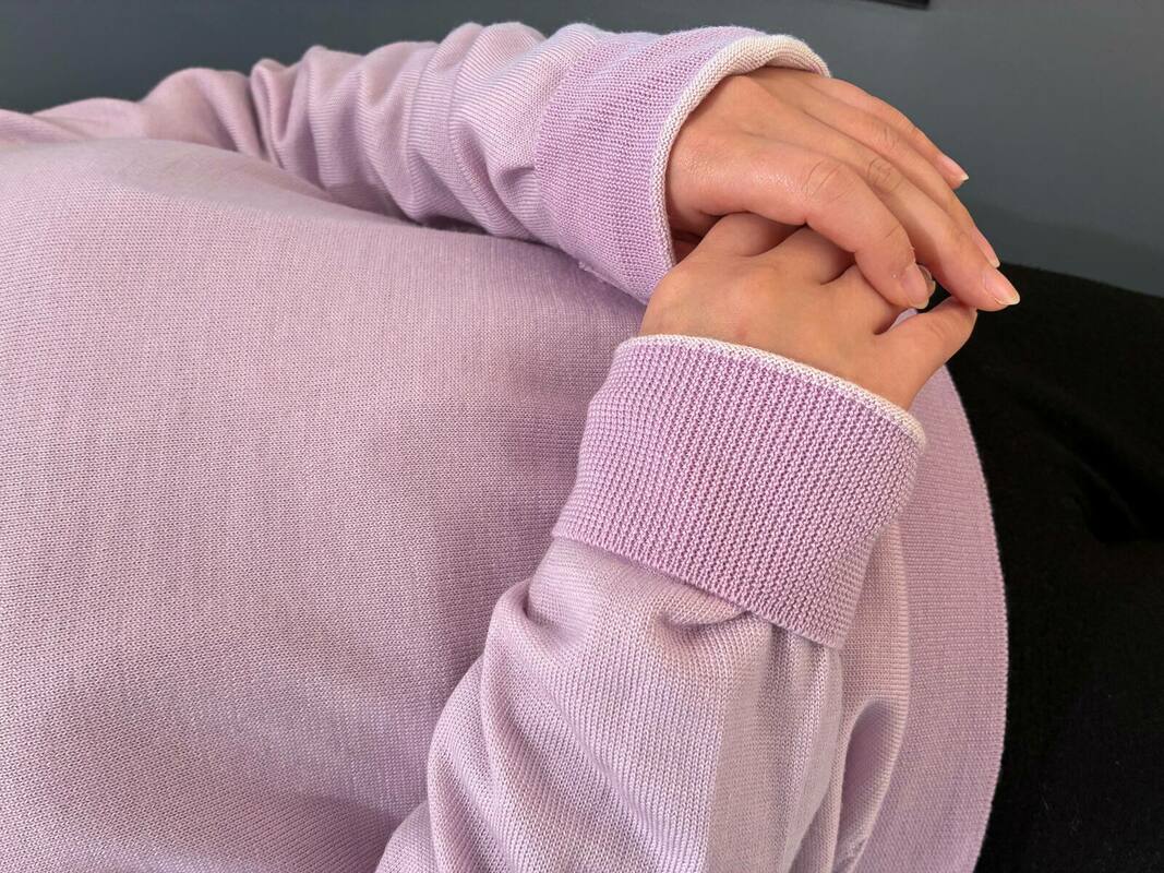 アロマの香りを抽出した、桜の残渣で染め上げたニット。