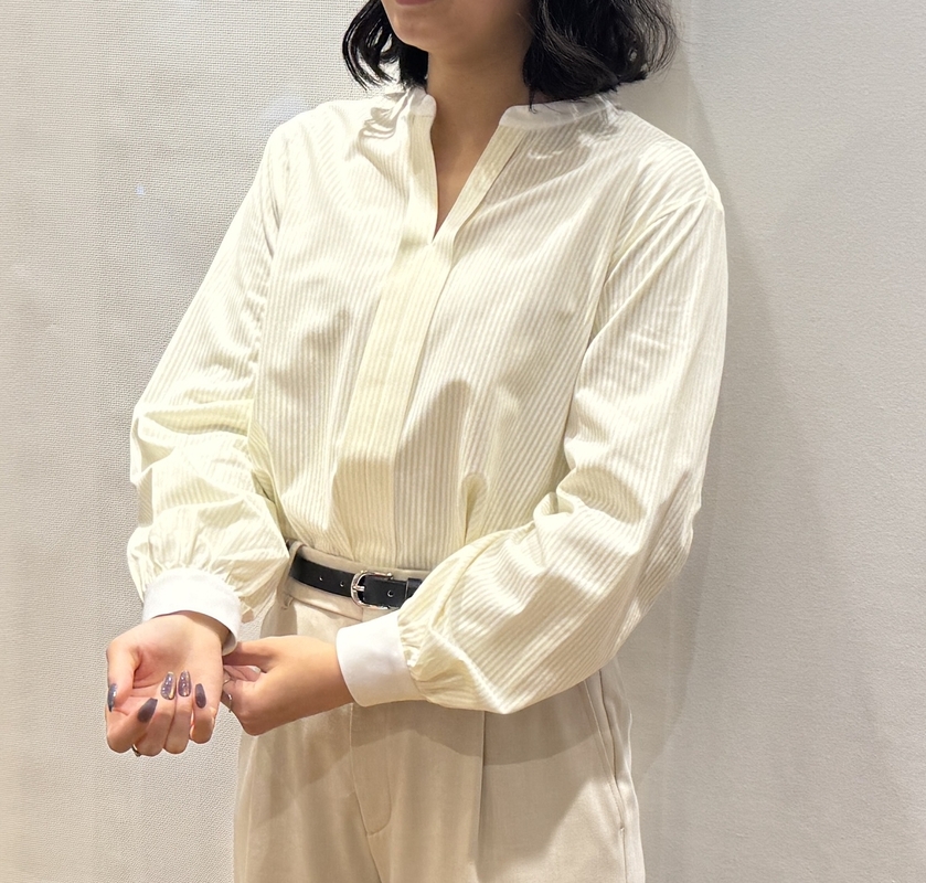 キーネックブラウス新色のクレリックカラーが入荷しましたのでご紹介いたします。