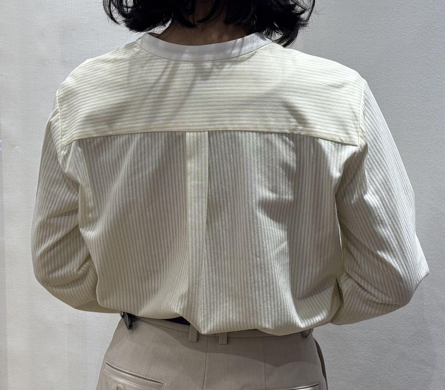 今回は新色として入荷したJ-TECH STRETCHキーネックブラウスをご紹介いたします。