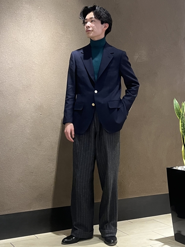 ダブルの方は肩パッド無しパッチポケットと、デザインもカジュアル寄りのアイテムなのでカジュアルな装いと相性がいいです。
