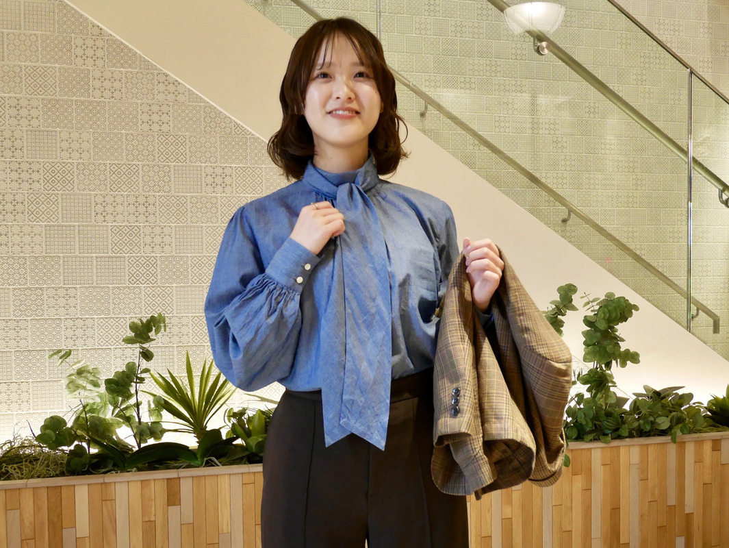 着まわしやすい春色ブラウスはいかがでしょうか。