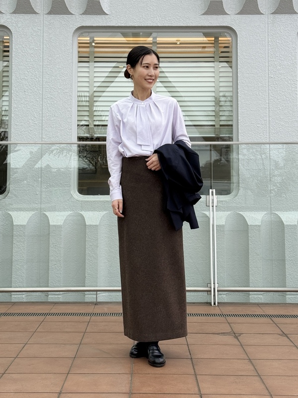 ジャケットやタイトスカートと合わせ、オフィスカジュアルコーデを組んでみました。