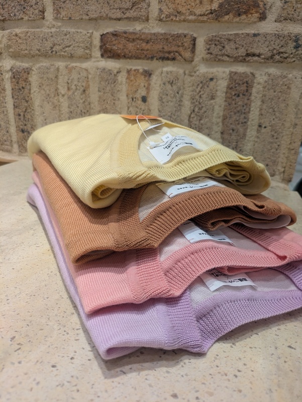 サクラ、チューリップ、シャクヤク、ボタンの四つの色素を抽出したセーターが完成いたしました。