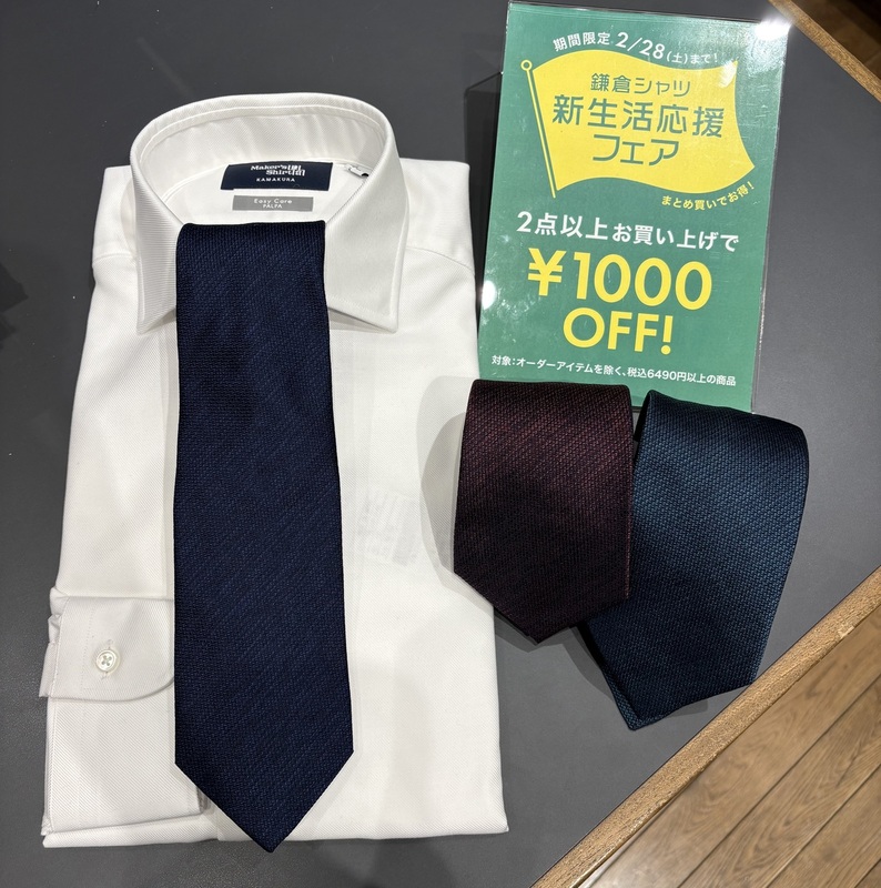 お得なフェアを開催中!シャツの買い替えやネクタイの買い足しにいかがですか?