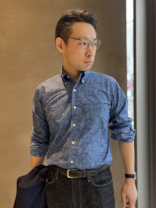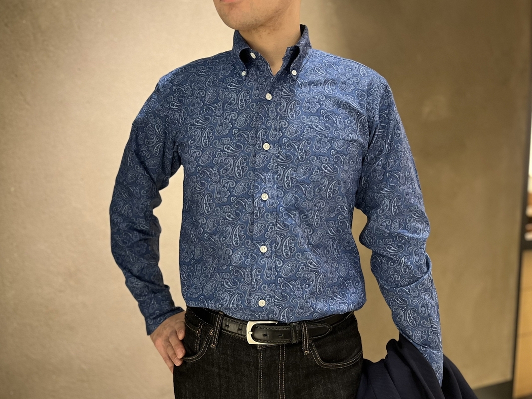 鎌倉シャツはその時代背景に敬意を払い、1960年代のアイビールックを象徴するペイズリー柄を、