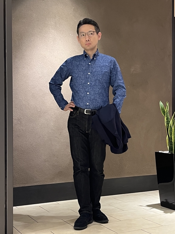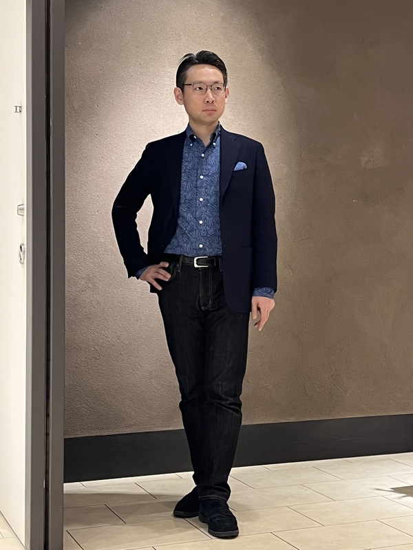 ジーンズとジャケットを使った休日のジャケパンスタイルに合わせてみました。
